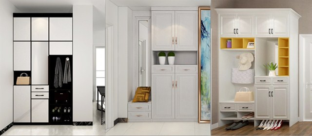 可以设计成吊柜的形式,用底部空间放置常换的室内拖,减少不必要的开柜次数。
