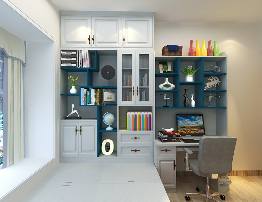 办公、阅读、上网,每天我们都需要与书柜、书桌打交道。如果办公区域不能井然有序地放置书籍、办公用品、电脑等物品,很容易就会杂乱无章,没有了良好的学习、办公氛围。对于实用主义者而言,既能完美地利用室内空间,又能满足收纳所需的书柜写字台一体化设计,可谓一大福音!