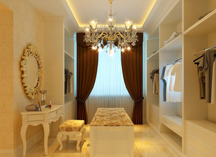 如今很多家庭装修的时候都会有衣帽间,而衣帽间的装修风格也是迥异多样,有田园小清新,简约时尚风格,欧美潮流风格,新中式现代风格,法式风格等等,今天我们就来为大家介绍一款衣帽间装修效果图。