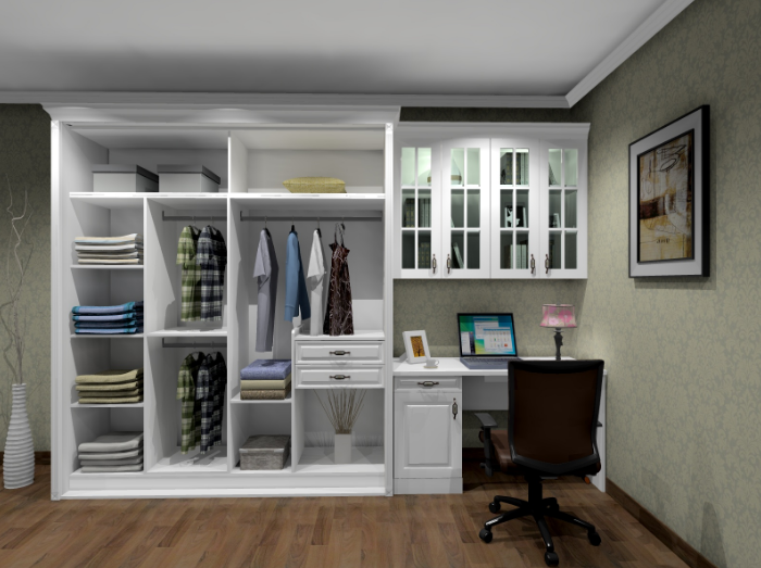 铂丽情怀卧室家具 掩门衣柜转角书桌组合定制