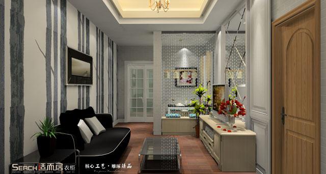 在整个客餐厅中,将就餐区和会客区以通道自然的划分开,这样既把就餐区和会客区明显的分