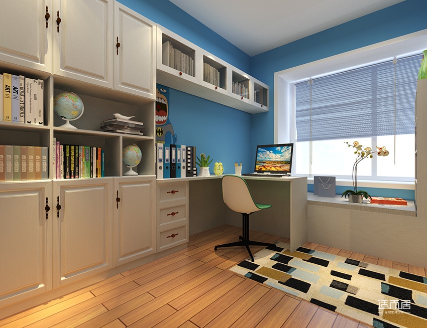 我们可以在飘窗上加多个柜类的书桌,这样书桌正好到正常高度,一方面利用好了飘窗打造成书桌样式,另一方面解决了空间拥挤感。而且书桌下的抽屉还增加了收纳功能,更多东西都能放得下。