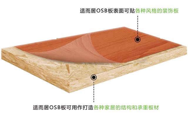 适而居OSB板(无醛MDI ),以澳洲松木为原料,经脱油、干燥、施胶、定向铺装、热压成型等工序打造成的定向结构板材。其甲醛释放量几乎为零。
