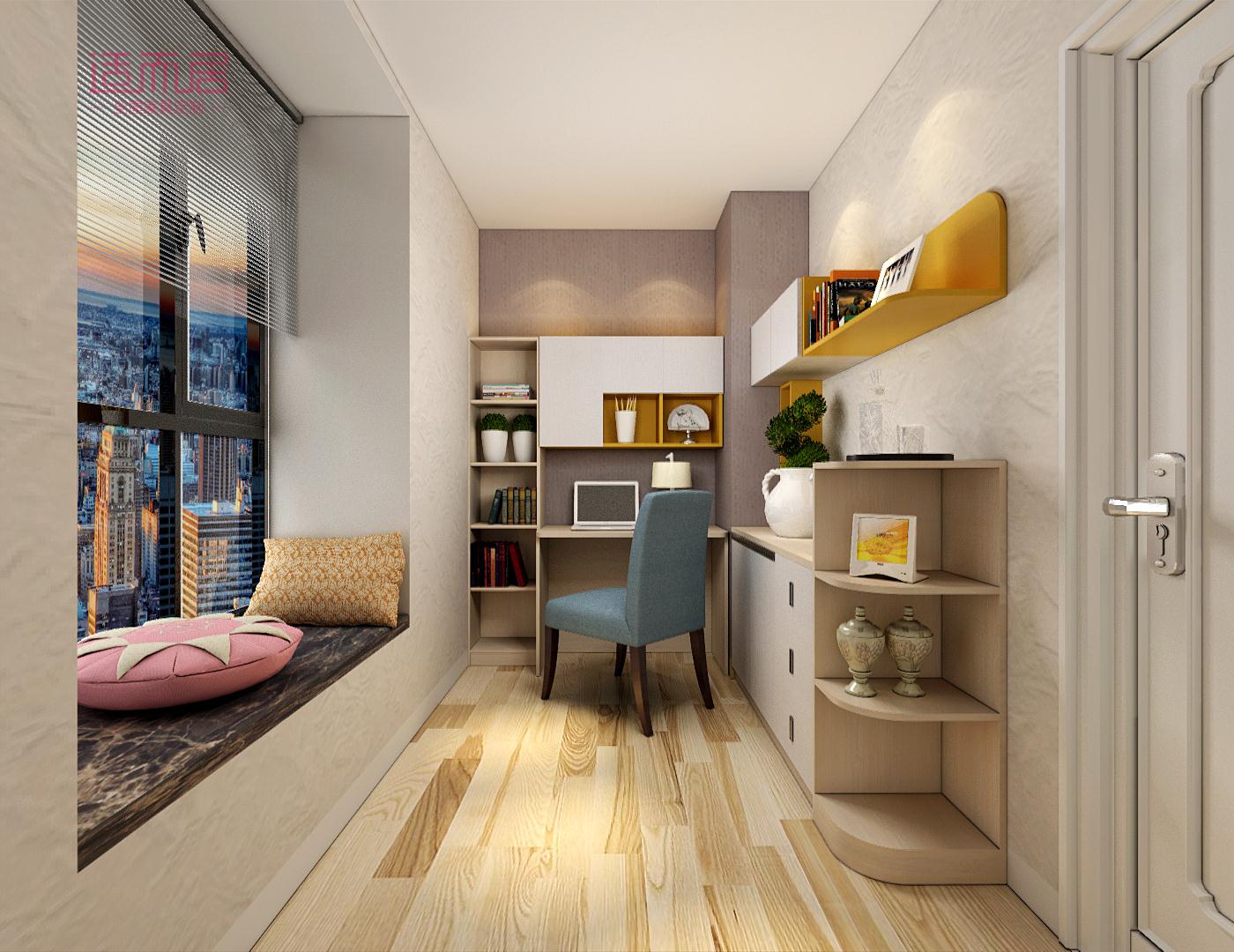 她家的问题:书房的转角位就带着凸出来的梁柱,视觉上是没太大影响,但是很不好放家具。总会空出一点。