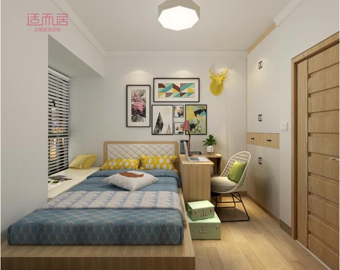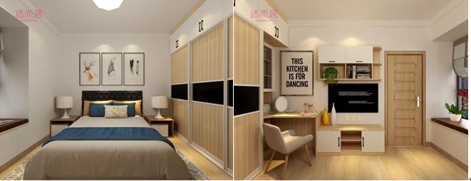 考虑到人行通道与家具之间的关系,衣柜用推拉门设计,让家具与主人活动的空间保持一定距离,别在空间上发生冲突。