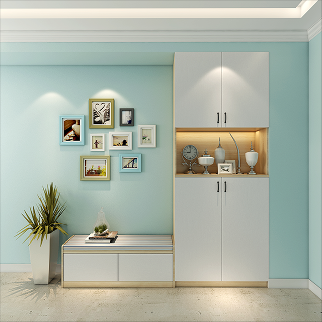 内嵌设计的鞋柜,可以与墙体合二为一,即便走廊过道较窄,置顶设计也不会显的逼囧。