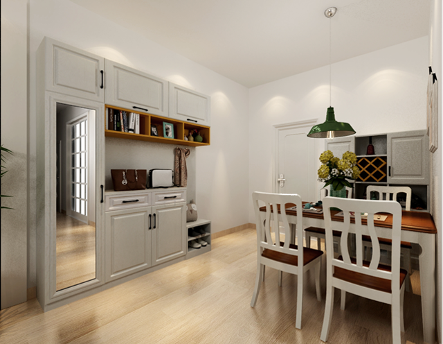 可以设计成吊柜的形式,用底部空间放置常换的室内拖,减少不必要的开柜次数。