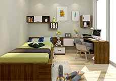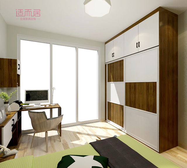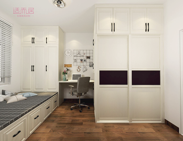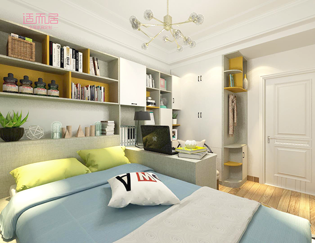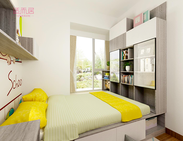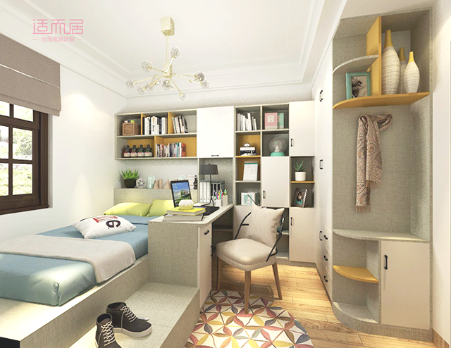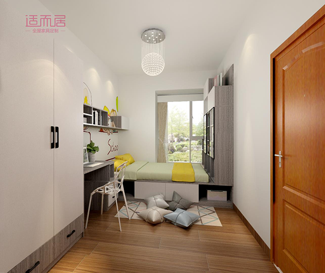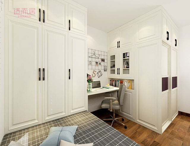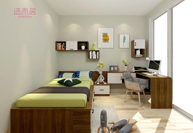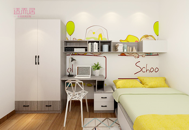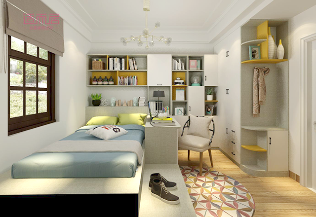 如果孩子的房间对于衣物有强大收纳需求,通过组合设计可以很好的强化收纳存储空间。合理的规划,空间的利用率会被最大值的发挥出来。