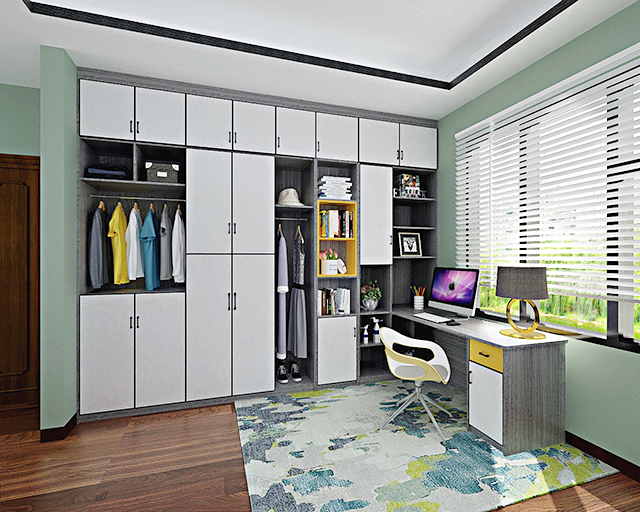 有的衣柜塞满了也只能容纳一个季度的衣服,有不仅装下一年四季的全部衣物,还能兼顾其他功能,比如办公柜。这就是定制的力量。
