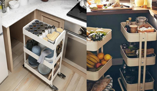 如果是常用的,还能考虑一个小推车,作移动置物区,或加设壁挂收纳区,也很实用。