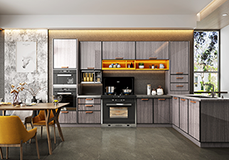 在定制设计储柜时,要做到将空间充分规划,极致利用,不要留出边边角角。包括吊柜上方避免留出空隙。浪费顶部空间,且油烟灰尘的清理是真的很头疼。