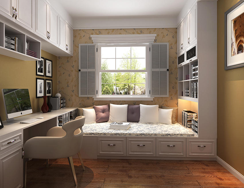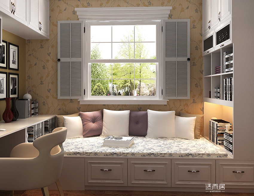 梦幻城堡青少年房家具 飘窗榻榻米整体书…