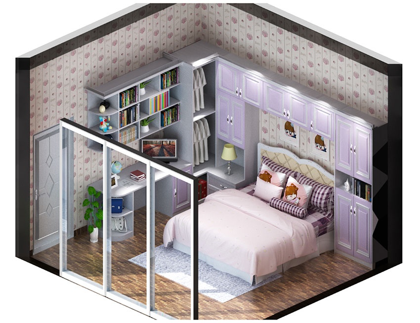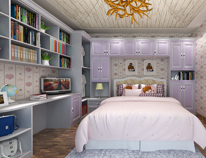 巴黎倩影儿童书柜效果图 儿童床整体衣柜…