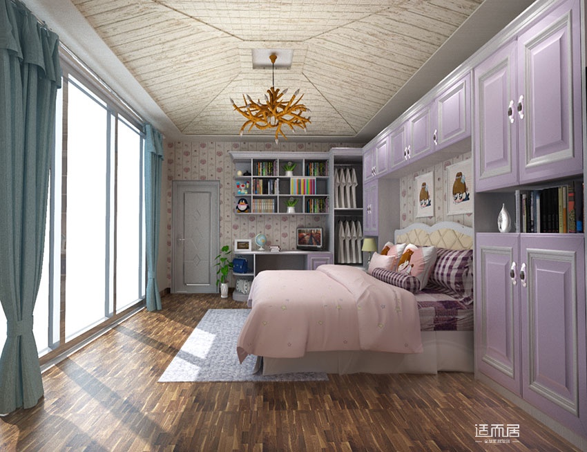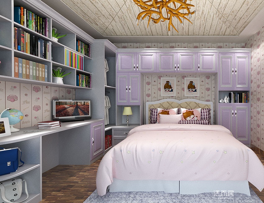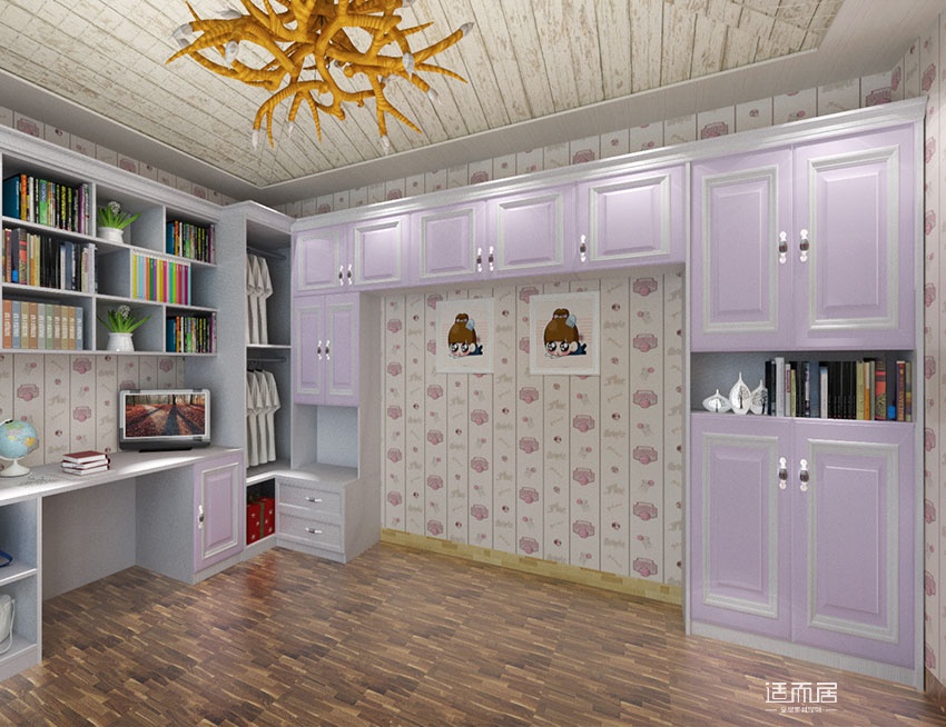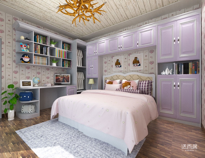 浪漫本色女孩房家具 儿童床组合衣柜书柜定制