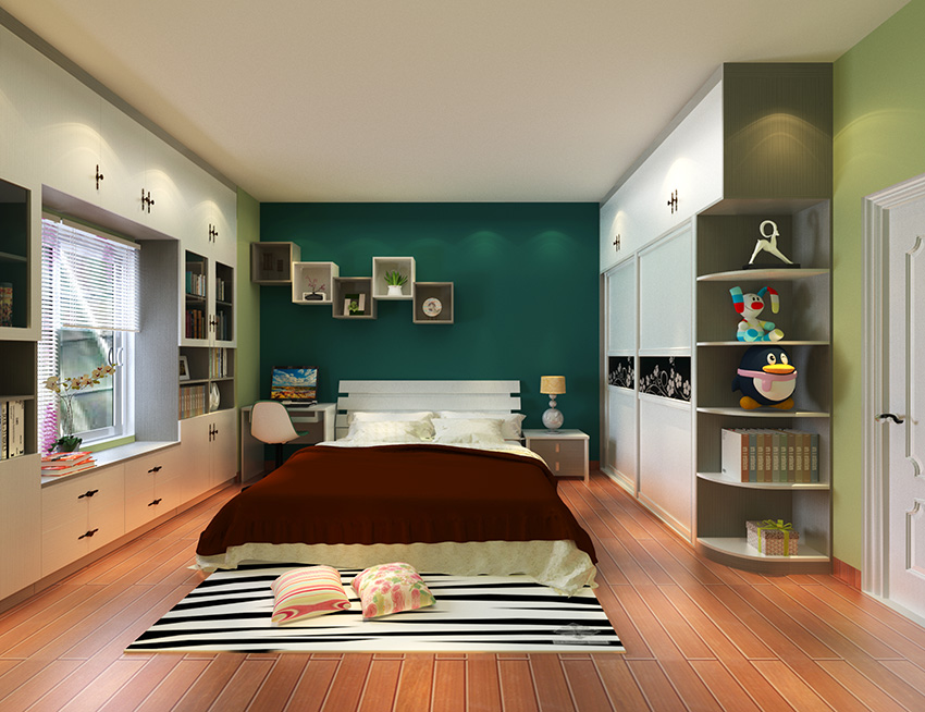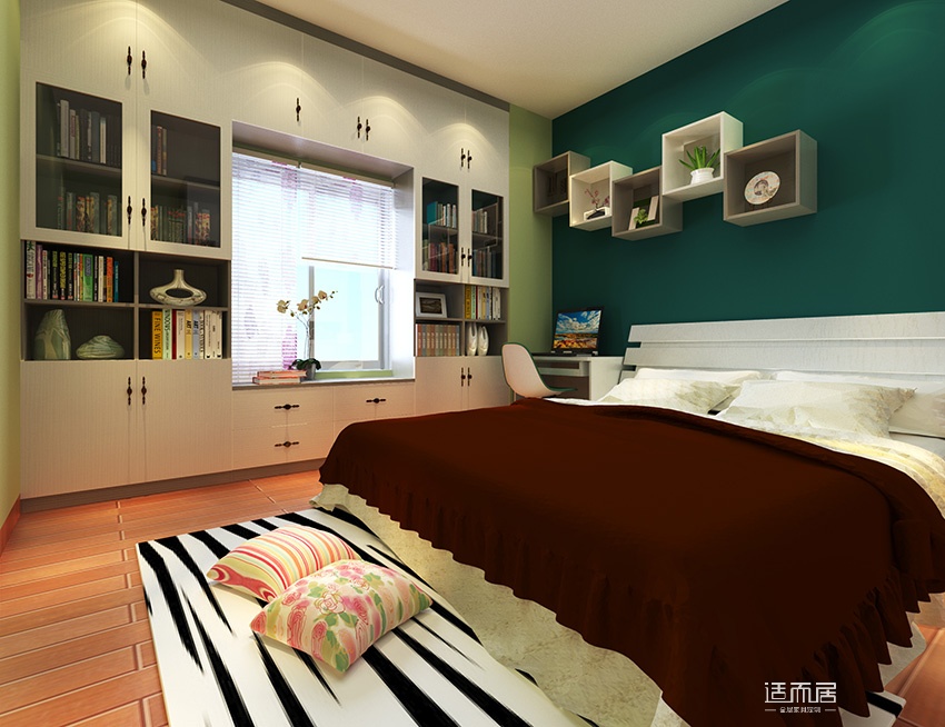 设计以温暖简单为主,且温馨舒适。卧室家具设计简单,柜体门板是象牙白色调,附有灵动的腰线点缀,功能实用,方便美观。衣柜储物,飘窗边打造阅读区,卧室温馨舒适。