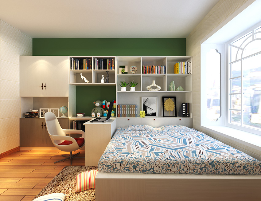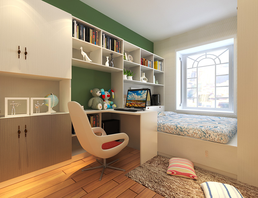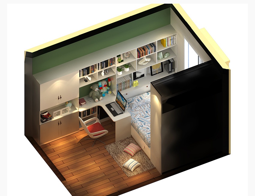 时代E族飘窗儿童床设计 整体衣柜书桌组合定制