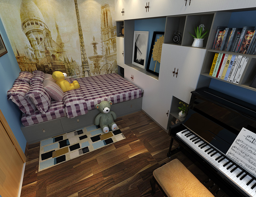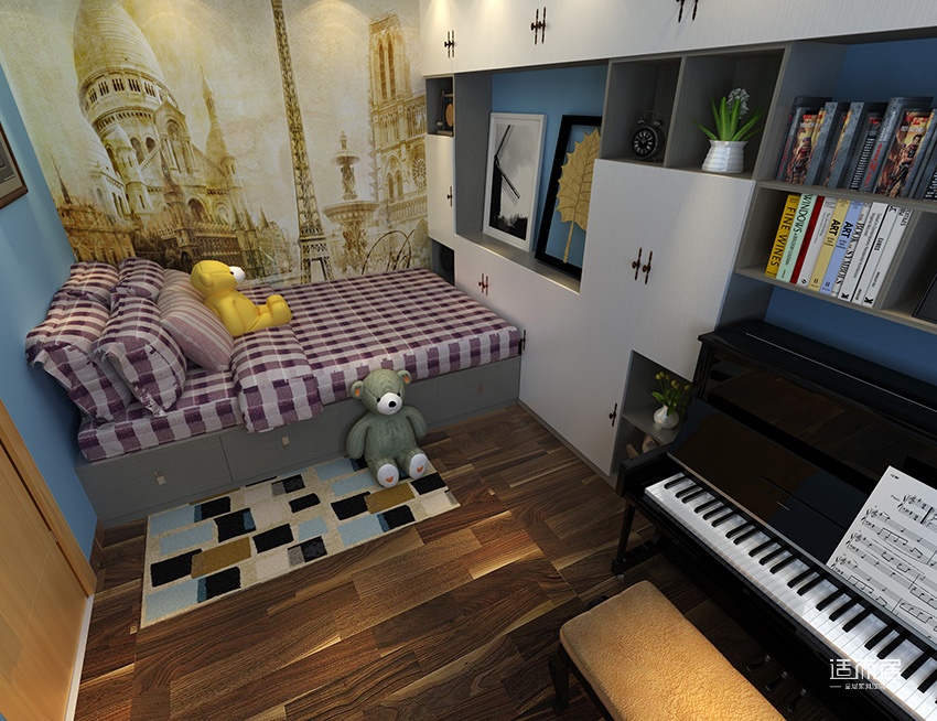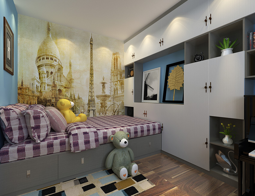 巴黎倩影儿童书柜效果图 儿童床整体衣柜…