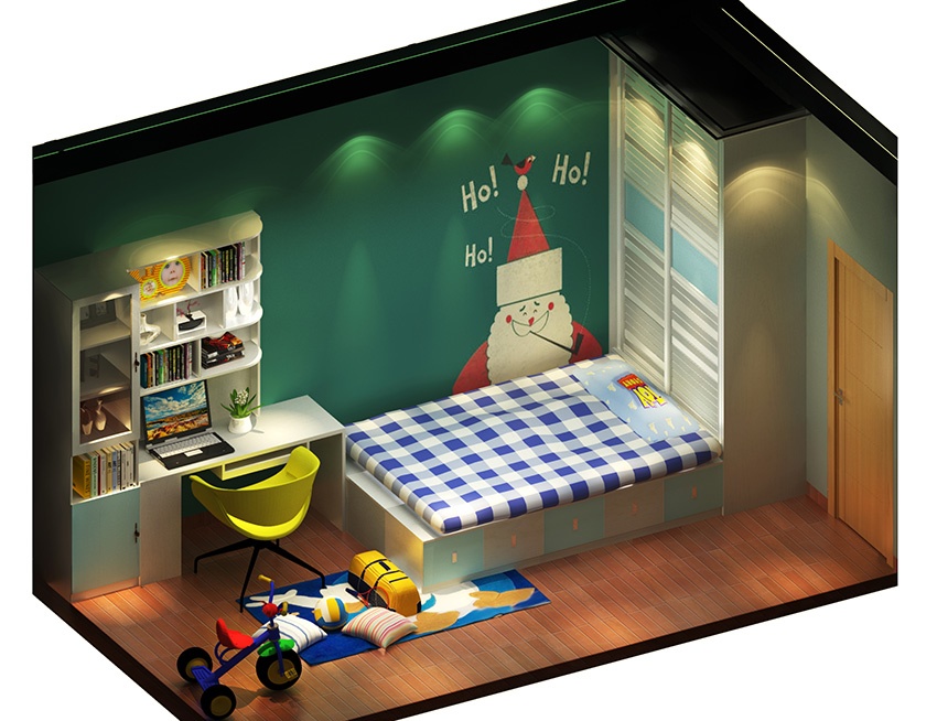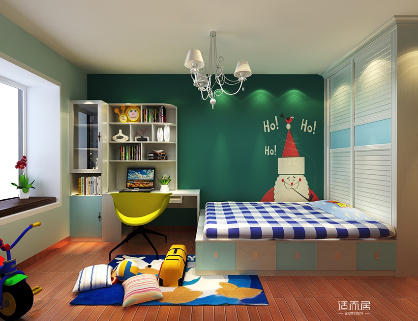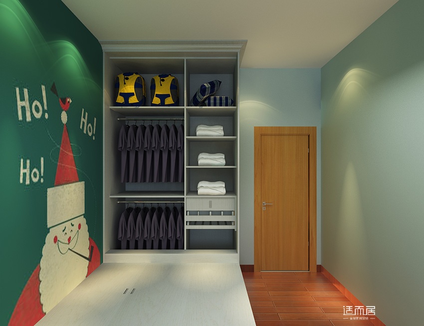 儿童房选择了布艺床靠,柔软舒适,呵护好动的孩子免受磕碰。到顶的衣柜和书桌定制设计,具有独立的收纳与学习区域,提高孩子的动手能力,也方便孩子学习阅读。