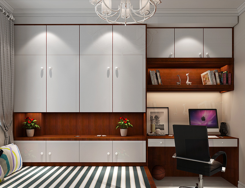 田园古韵飘窗榻榻米新古典风格书房家具套餐定制产品编号:SBK0007