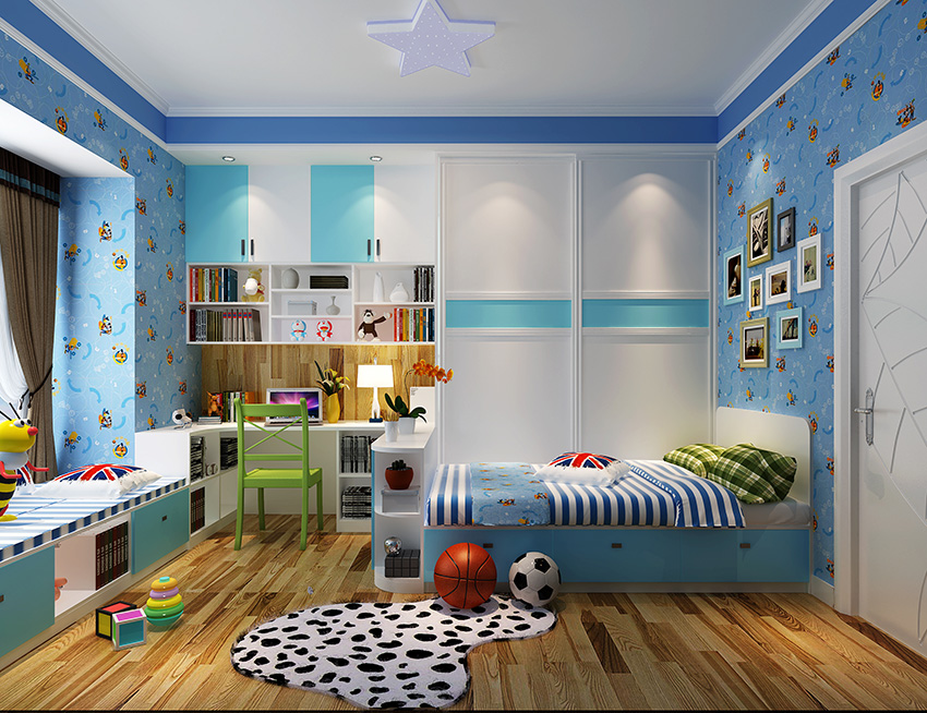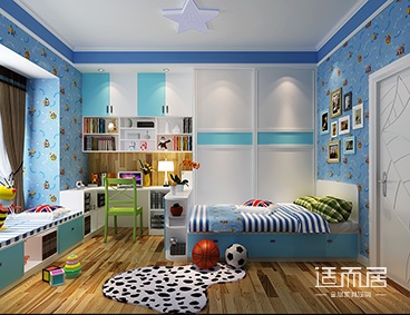 梦幻城堡风格 10平方米浅蓝色男孩儿童房…