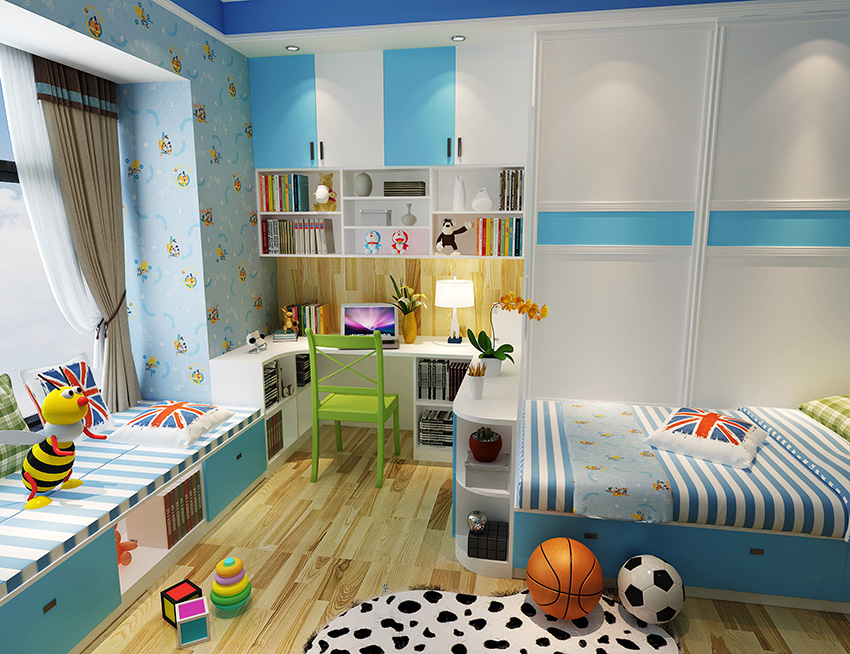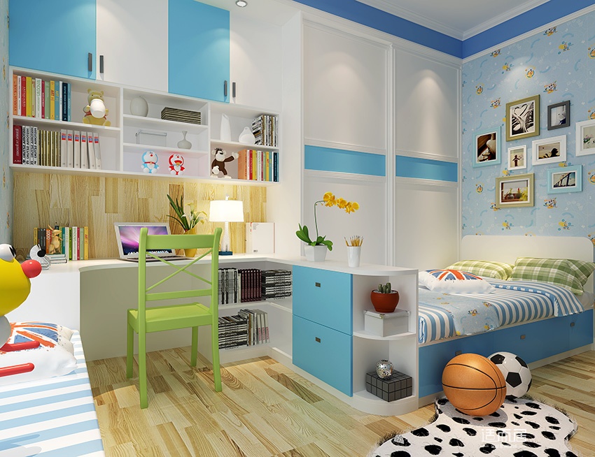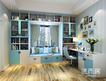 时代E族飘窗儿童床设计 整体衣柜书桌组…