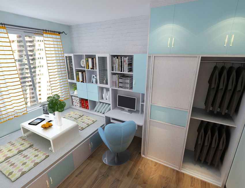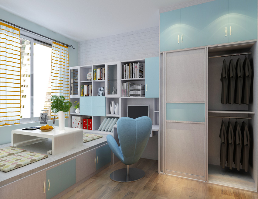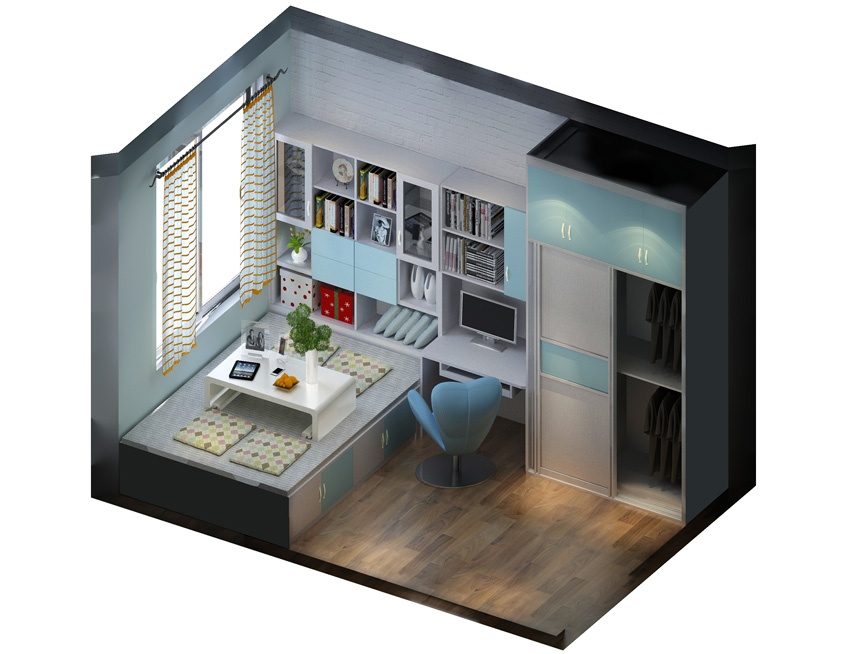 现代卧室家具 榻榻米组合式移门到底衣柜
