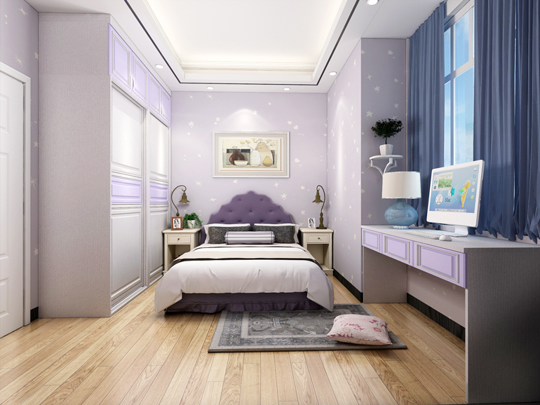 浪漫本色儿童房家具 儿童床整体衣柜定制