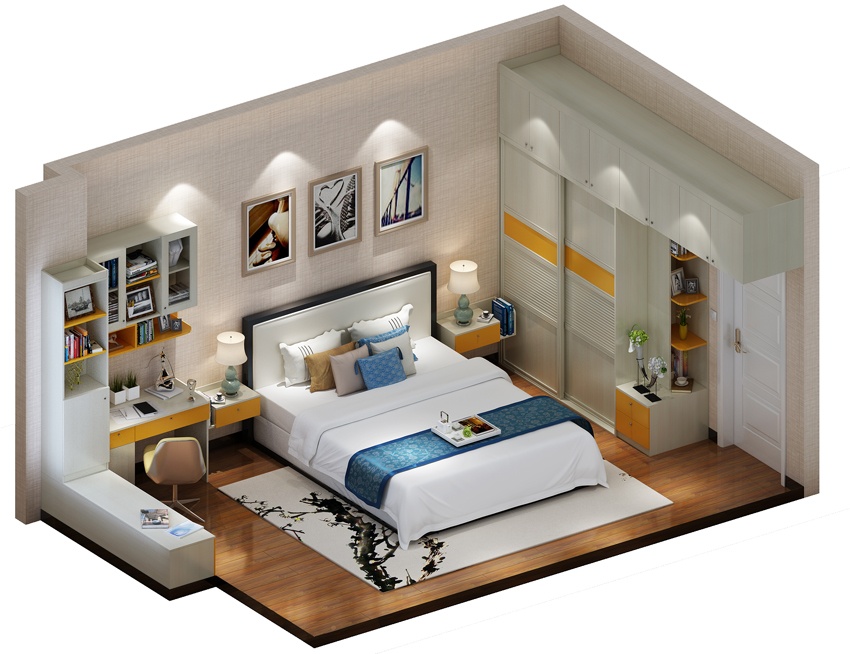 美洲之家卧室效果图 趟门衣柜组合床定…