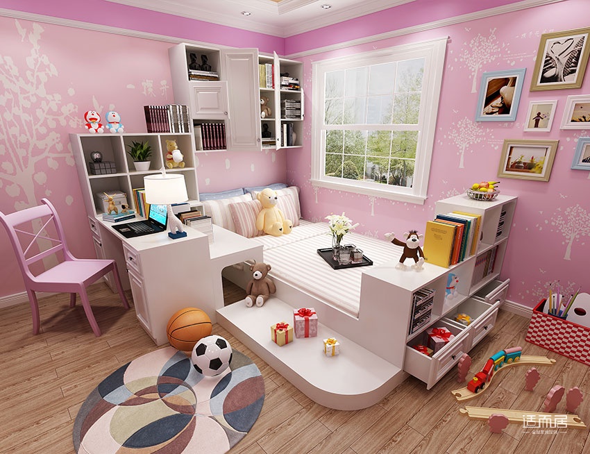 "根据儿童房的特点设计了很多储物柜,可以方便收纳孩子的玩具、课本和衣物。通过科学合理的设计,儿童房变成了学习、休息和放松的乐园。"