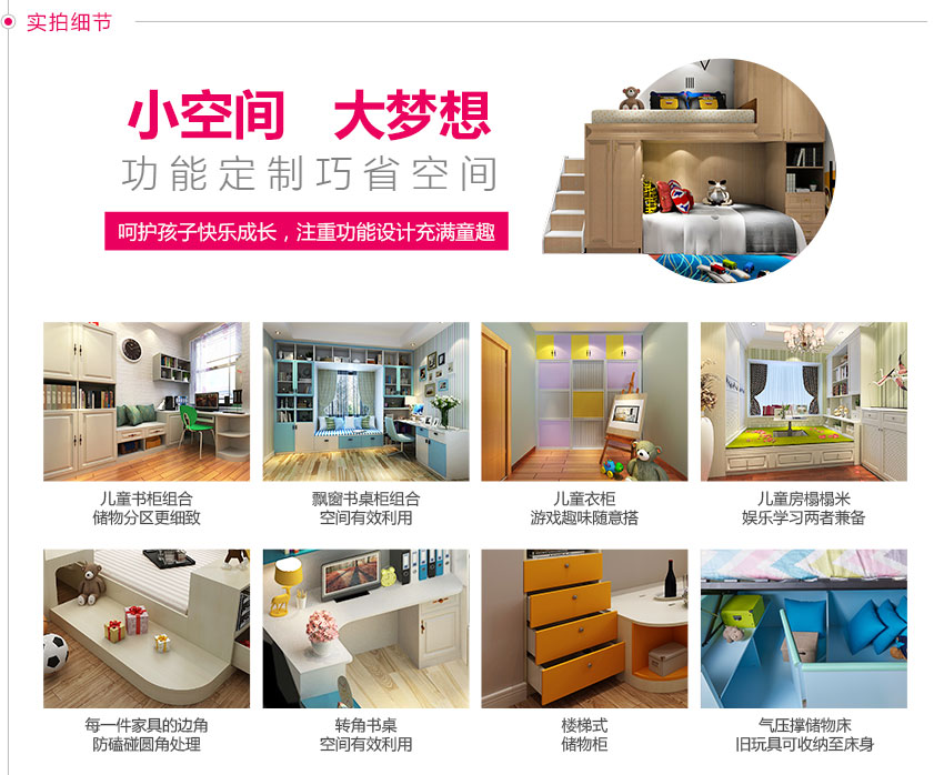 浪漫本色飘窗儿童家具 整体衣柜儿童床定制