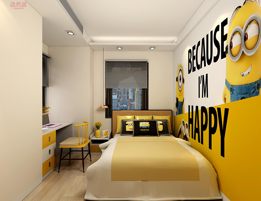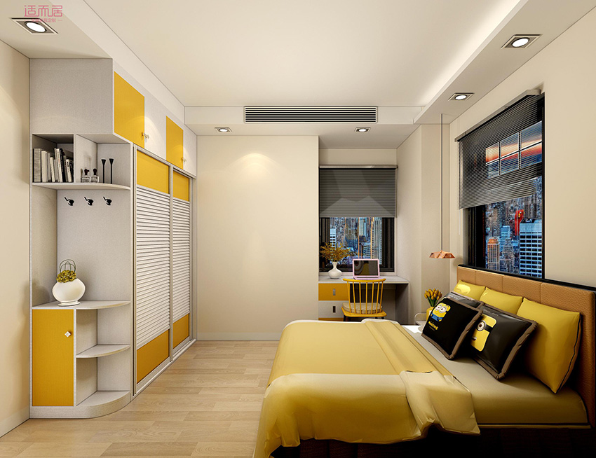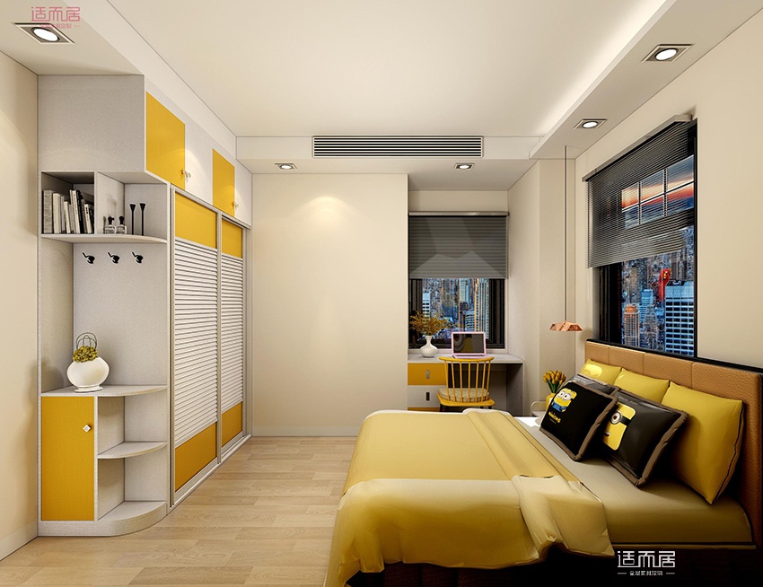 根据儿童房的特点设计了到顶衣柜柜,可以方便收纳孩子物品。窗边学习的小天地,满足了孩子学习的需要。通过科学合理的设计,儿童房变成了学习、休息和放松的乐园。