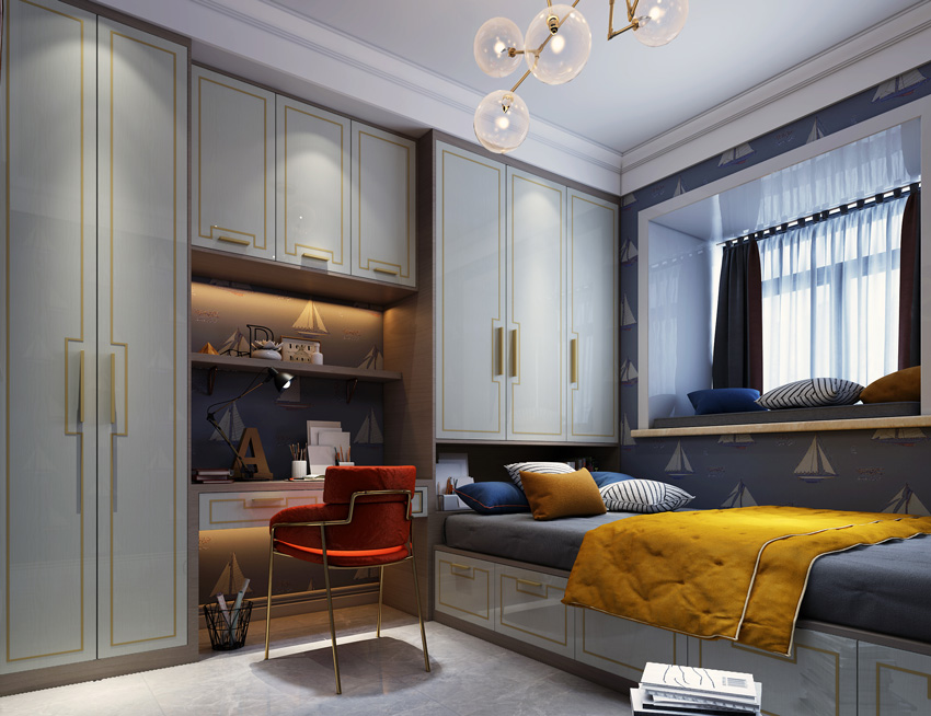 现代简约儿童房家具 整体衣柜搭配榻榻米…