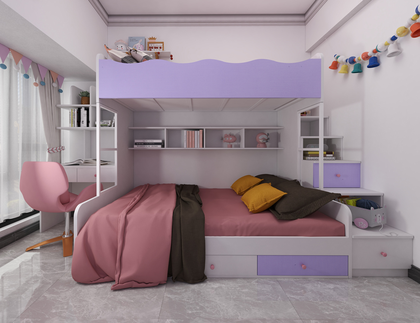 梦幻城堡儿童房家具 整体衣柜书柜设计…